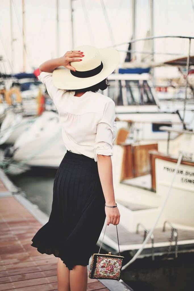 So then today, after reminiscing on my recent life-happenings and incapacity to decide which idiotic thing to focus on next, from my humble daily experiences – it hit me: the bloody PLEATED SKIRT, because had I already had one I’d be blogging in it right now, worn it last night for drinks, worn it today while cooking, tomorrow while running errands in town, with my ankle strap sandals and some whatever top.