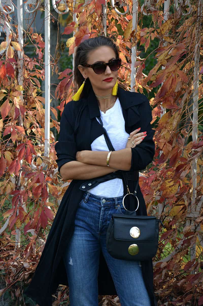 I am wearing: Earrings Flowers Over Ice | Zara boots | Bershka Jeans | Zara Trench Coat | Coton T-shirt | H&M sunglasses | Italian Bag