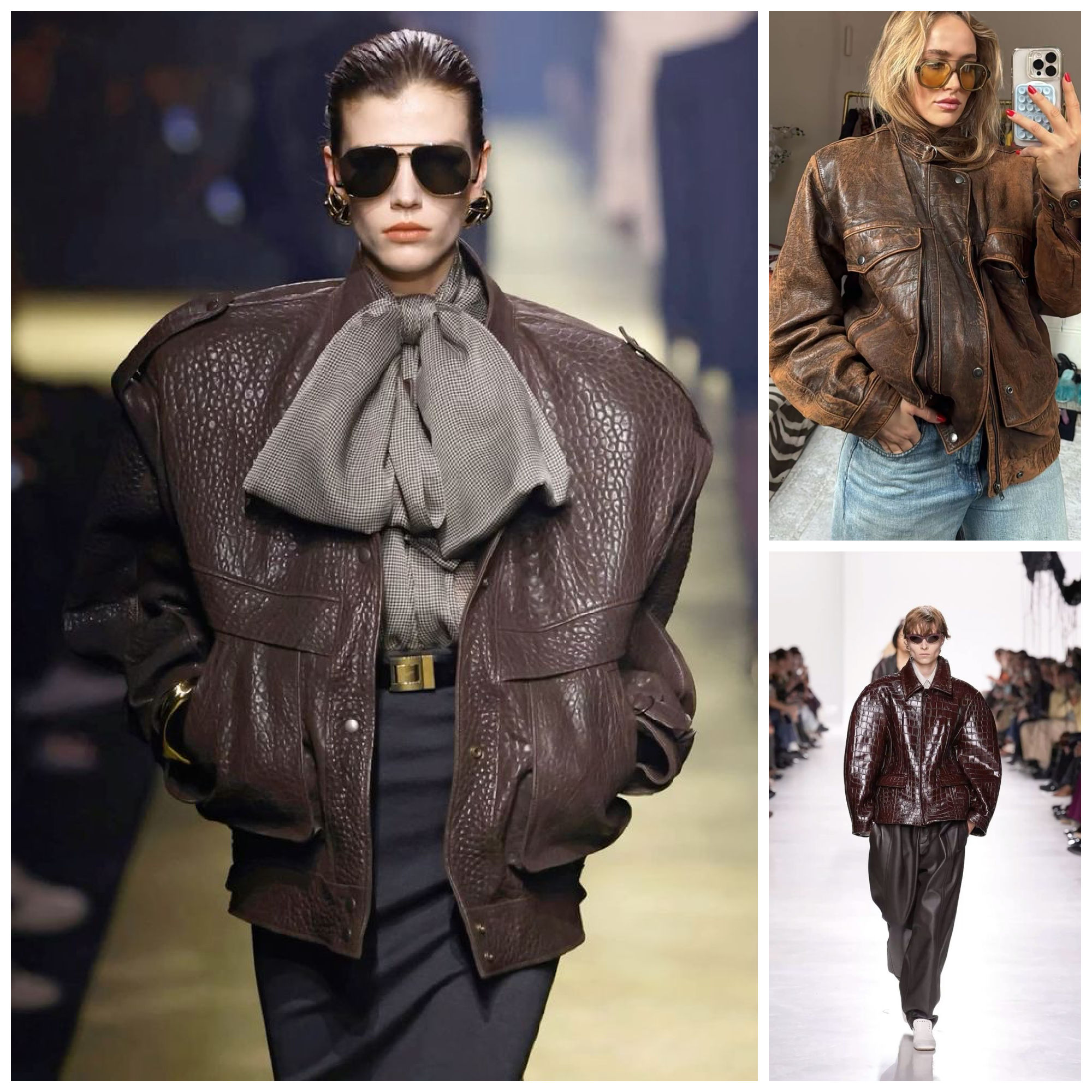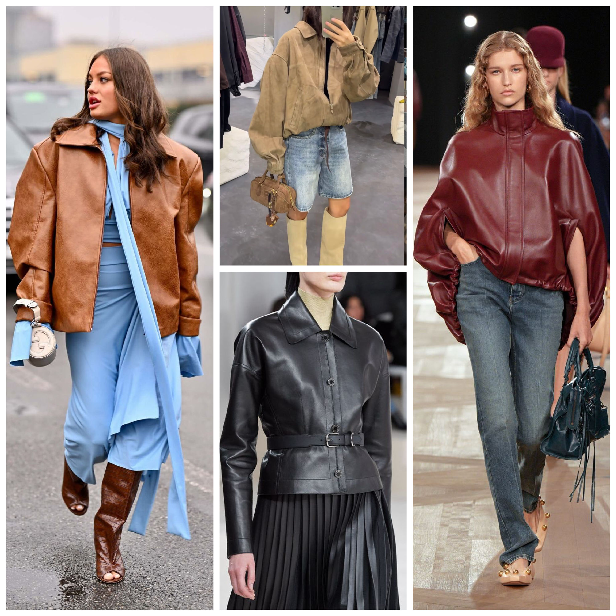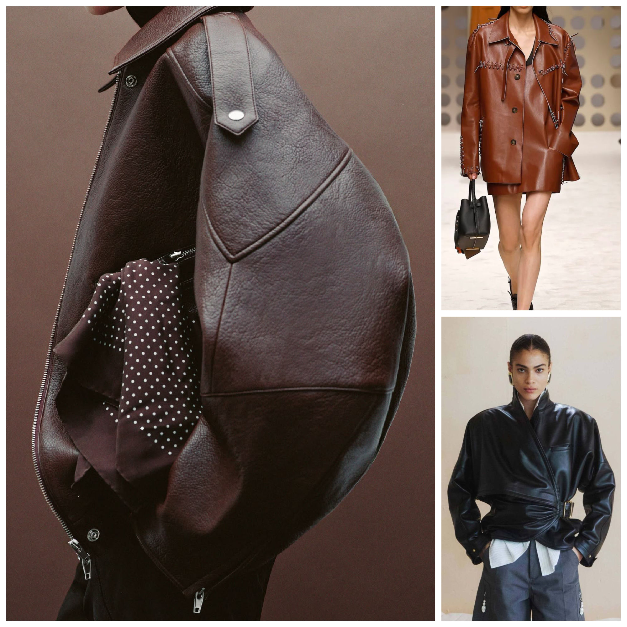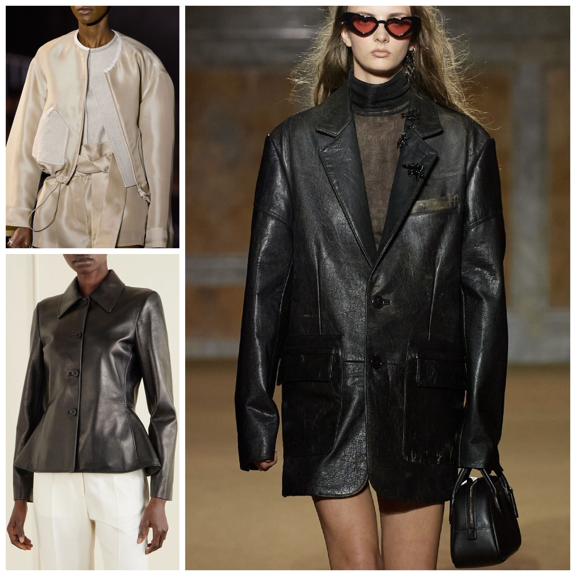 Leather jackets of all colours are having a comeback, especially in brown, worn out leather, waist length, very grungy 90s inspired, also 80’s silhouettes are in for leather jackets. Think solid pieces, slightly oversized, but with a very classic good old cut, not the flimsy tiny circa 2006 styles.