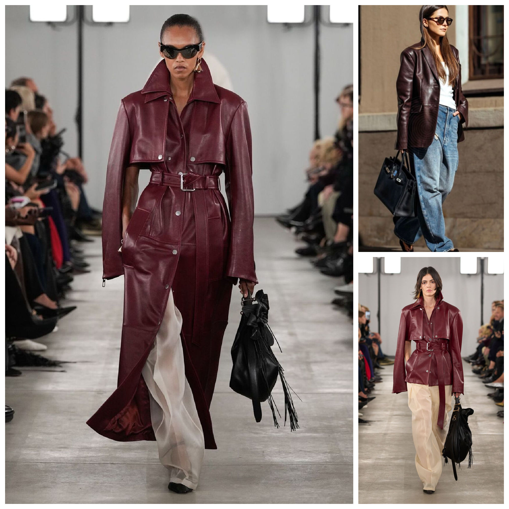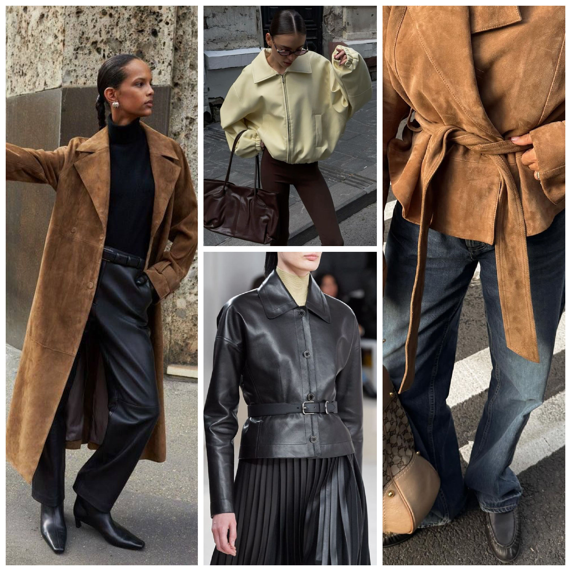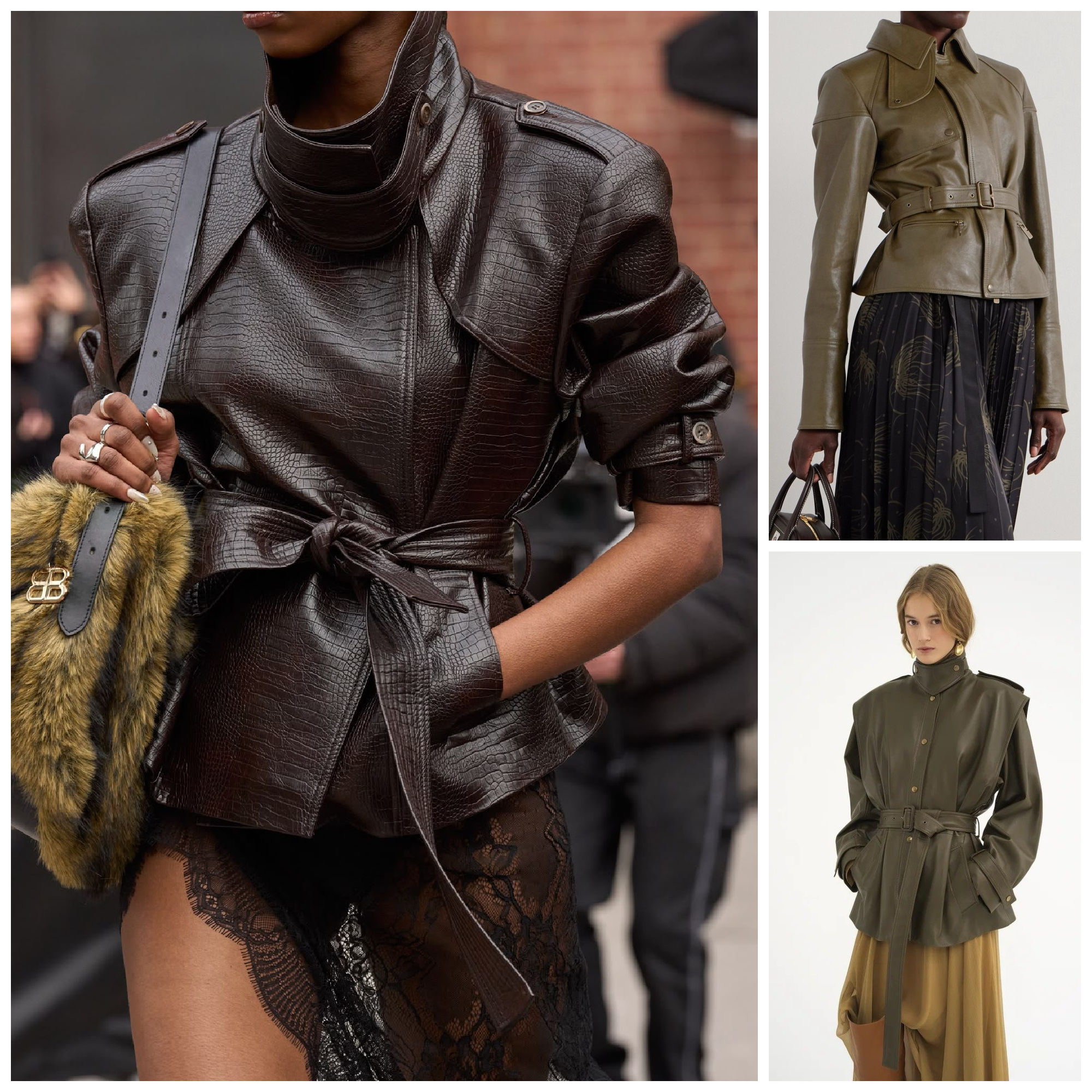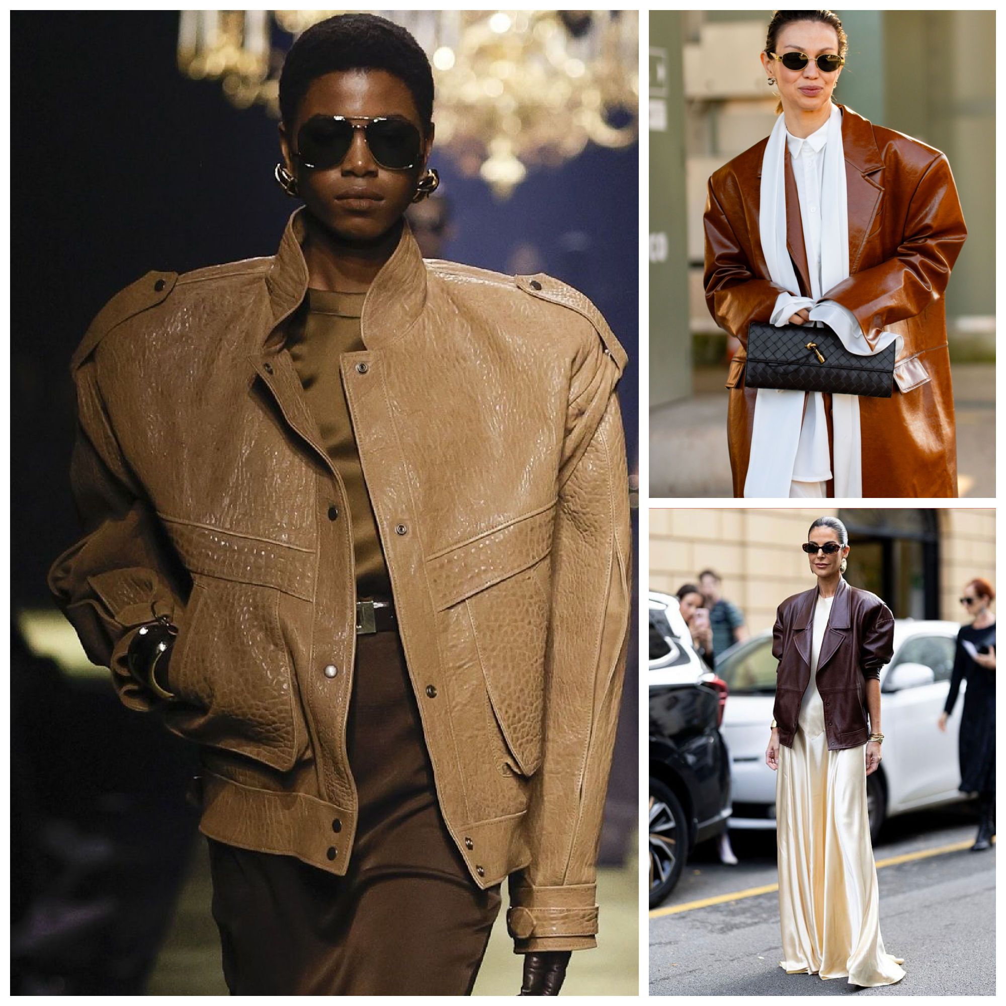 Leather jackets of all colours are having a comeback, especially in brown, worn out leather, waist length, very grungy 90s inspired, also 80’s silhouettes are in for leather jackets. Think solid pieces, slightly oversized, but with a very classic good old cut, not the flimsy tiny circa 2006 styles.