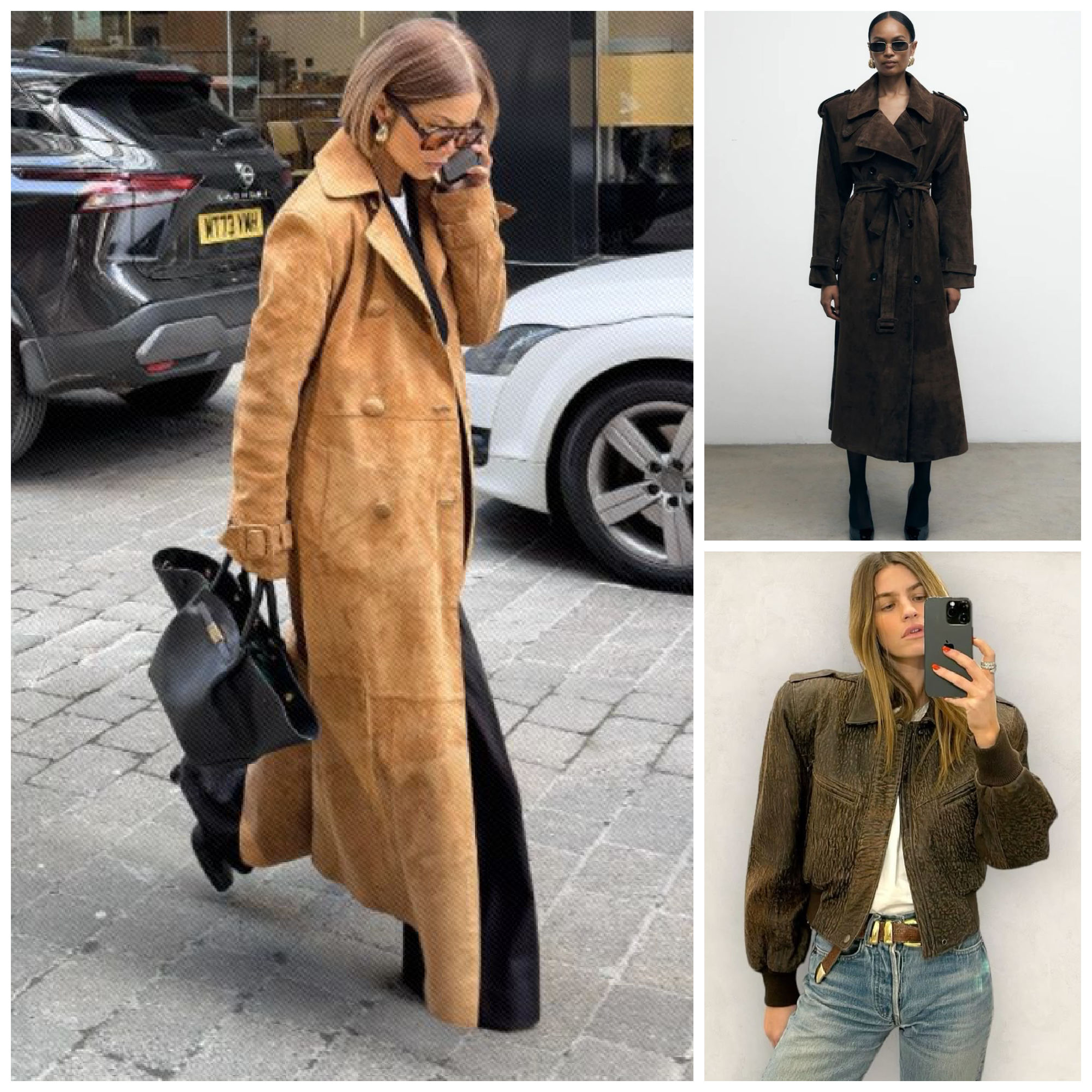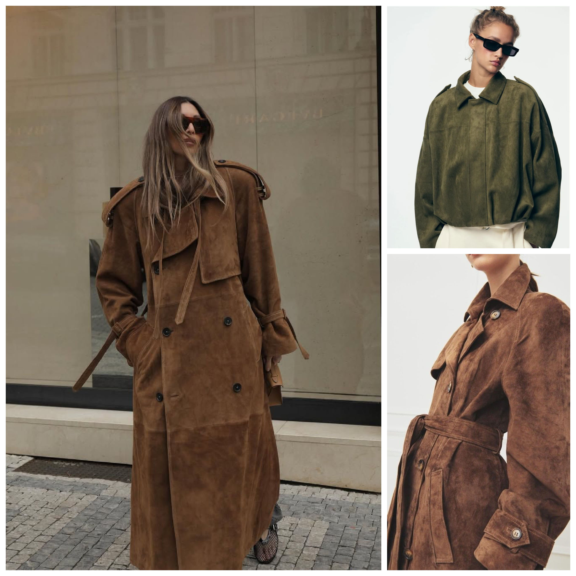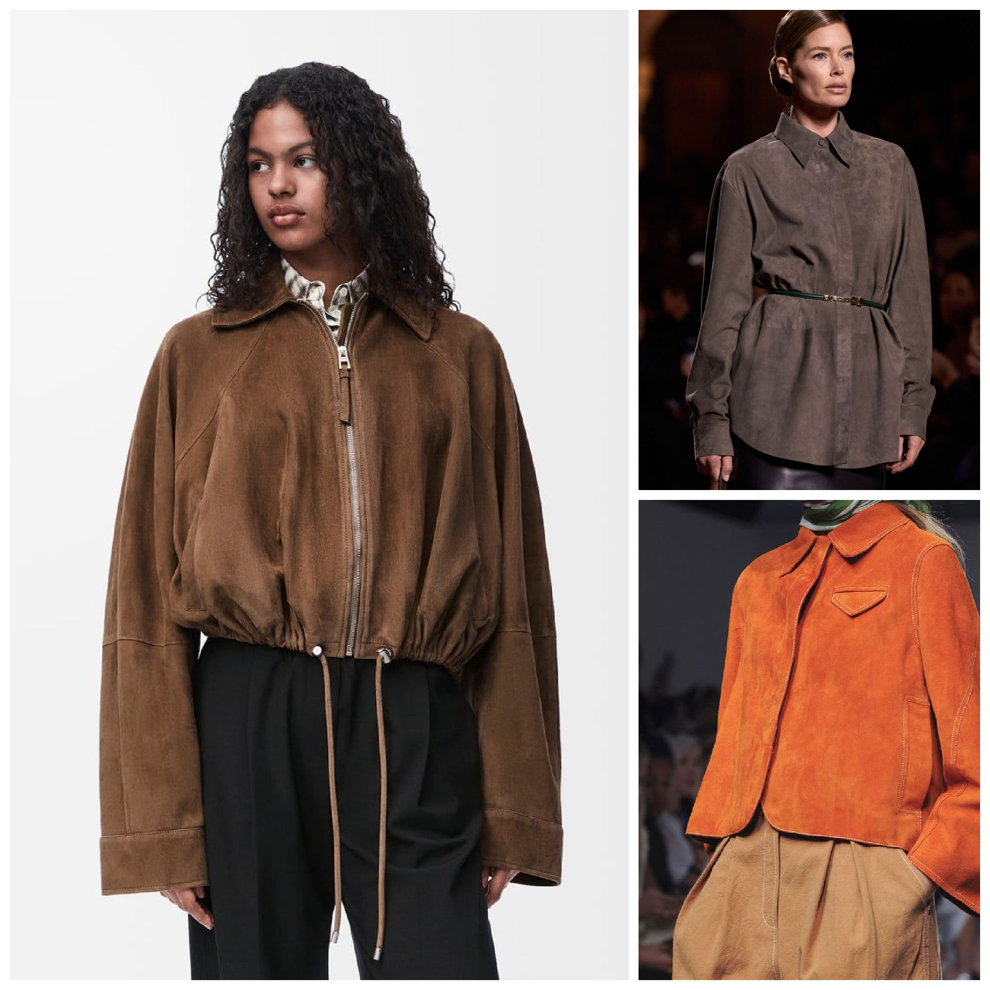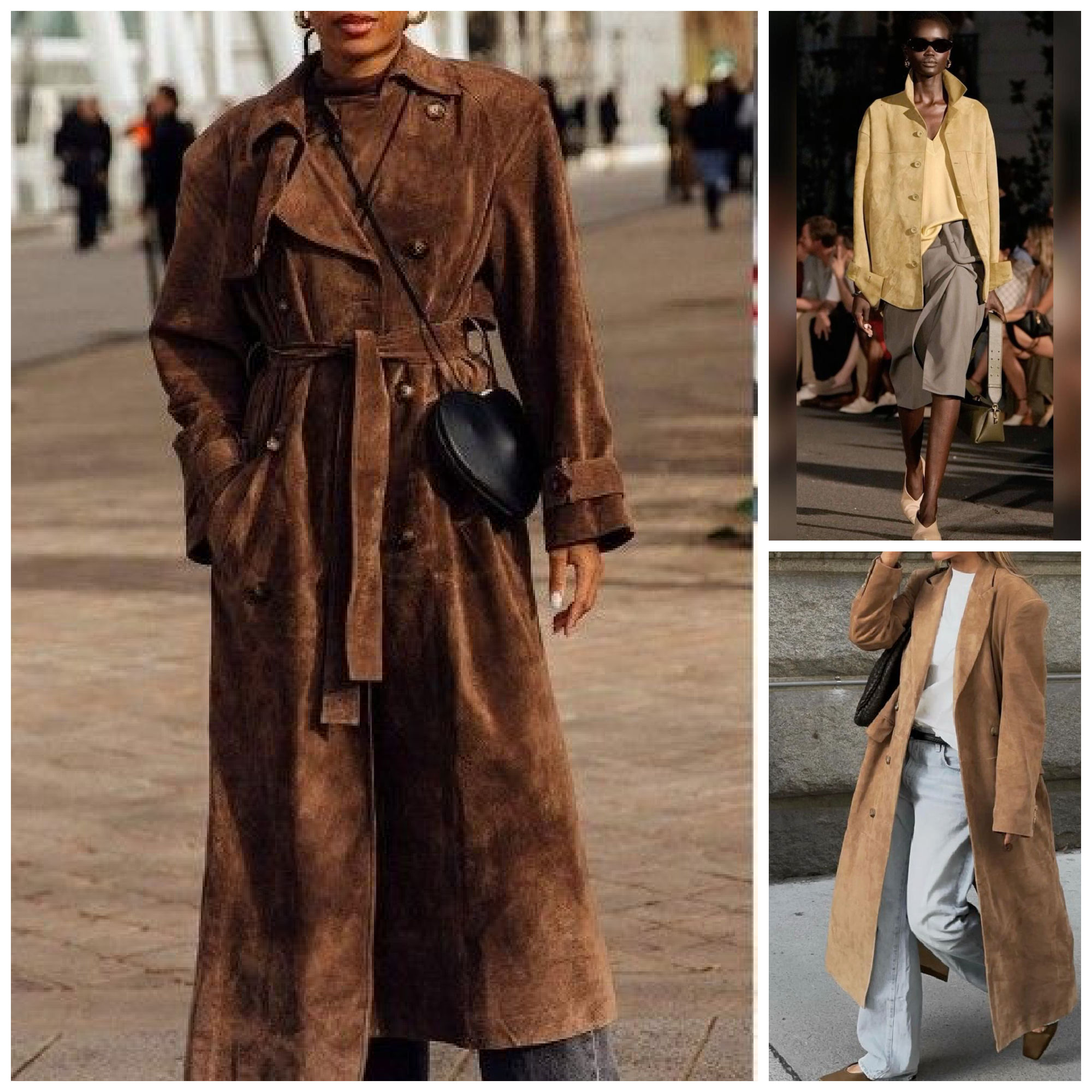 Forever a classic and always so sophisticated suede is the one fabric that can go in spring with no fear of ruin. Anything from floor length, to cropped, from funnel necks to collars, from belted cinged waists to oversized looks, blazers, trench coats, jackets – everything is in and the style goes either rich office sophisticated OR bohemian laid back.