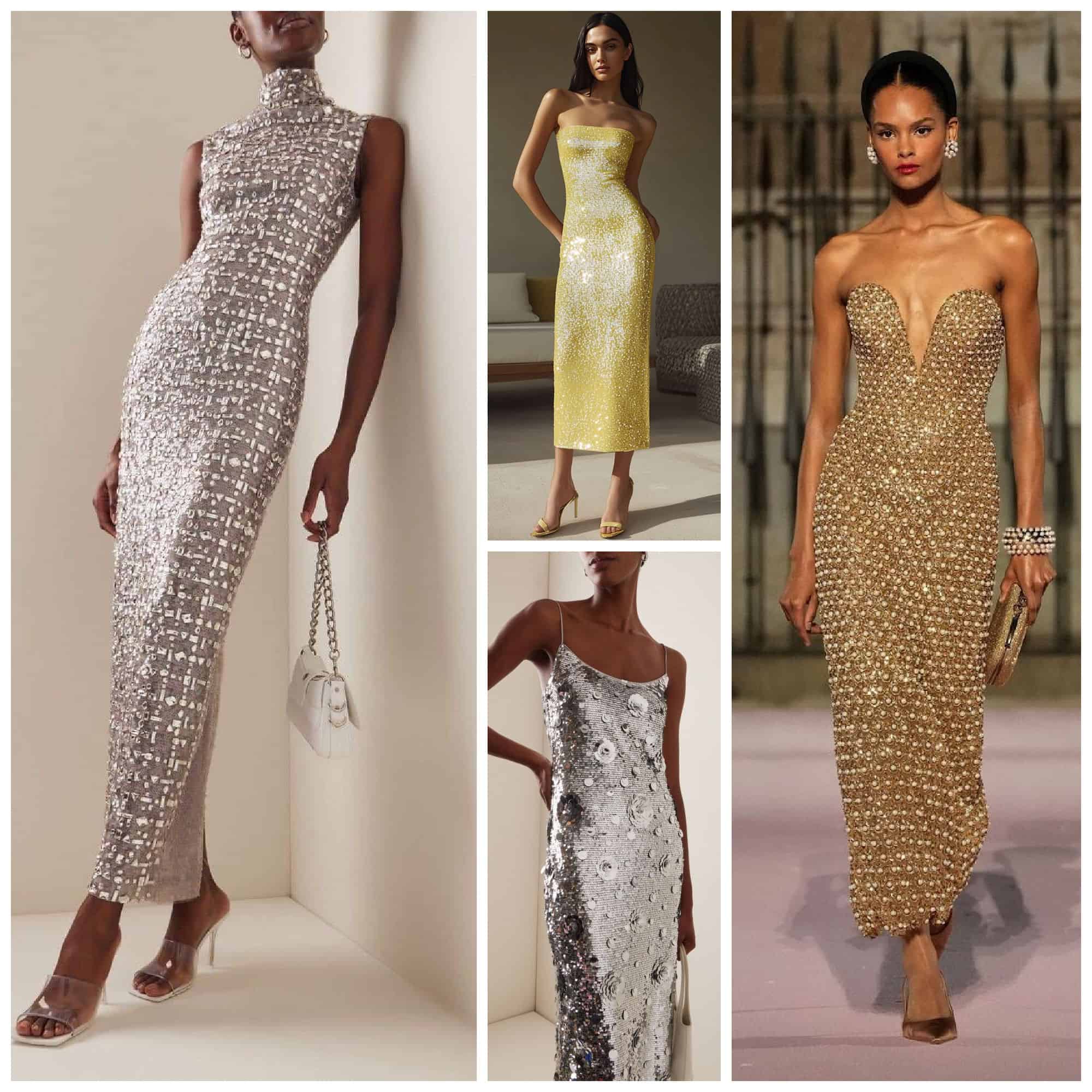 Trends such as metallic finishes, sequins, corset tops, and unique cut-outs give variety for those who want a statement look. At the same time, soft hues, slip silhouettes, and elegant black gowns remain strong choices for a more refined style.