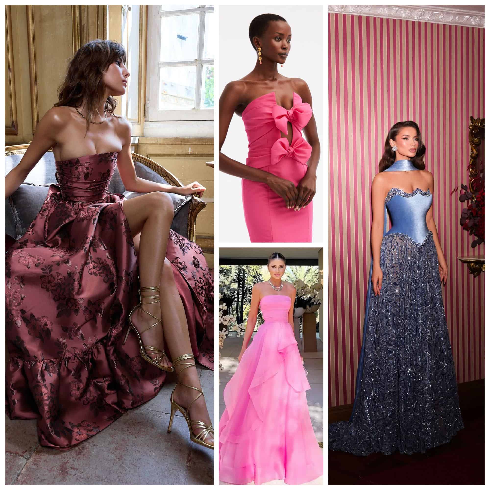 The strapless cut also suits different dress shapes. A fitted bodycon version creates a modern, streamlined look, while a full ball gown adds volume and drama. As a result, this design adapts easily to both formal and semi-formal events.